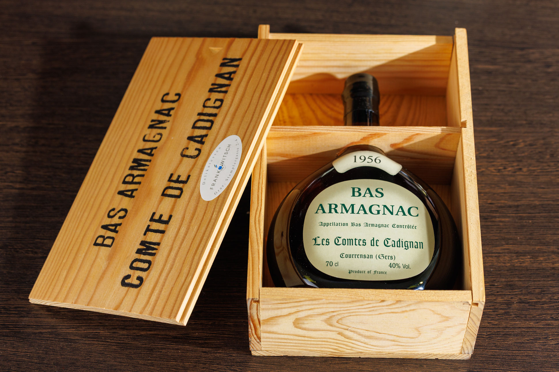 Винтажный арманьяк Les Comtes de Cadignan урожая 1956 года из Франции.