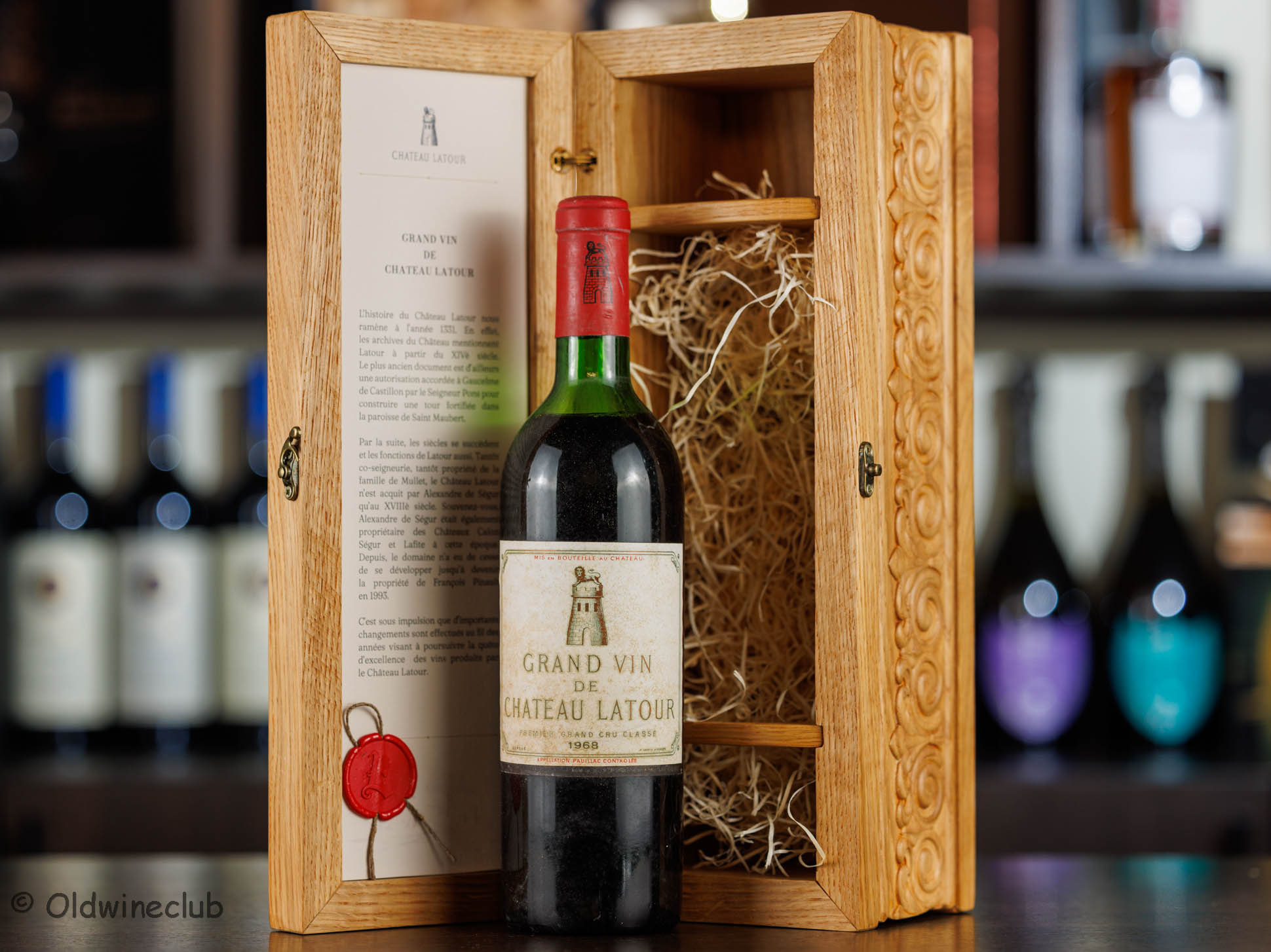 Красное сухое вино Chateau Latour Premier Grand Cru Classe a Pauillac, Medoc, Grand Vin Rouge de Bordeaux урожая 1968 года. Страна происхождения - Франция.