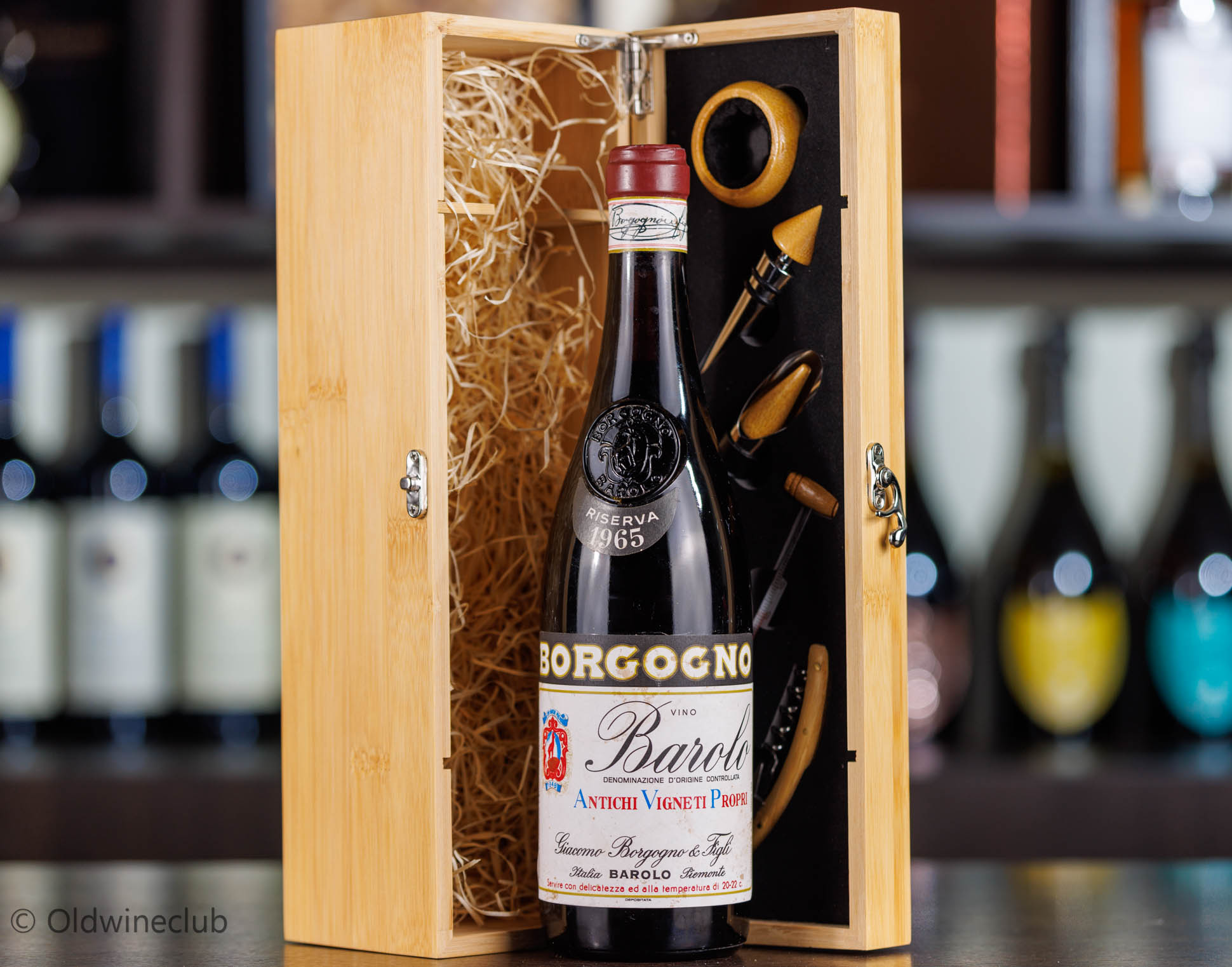 Красное винтажное вино Giacomo Borgogno & Figli Barolo Riserva 1965 года из Италии, регион Пьемонт. Предлагается в подарочной коробке. В наличии.