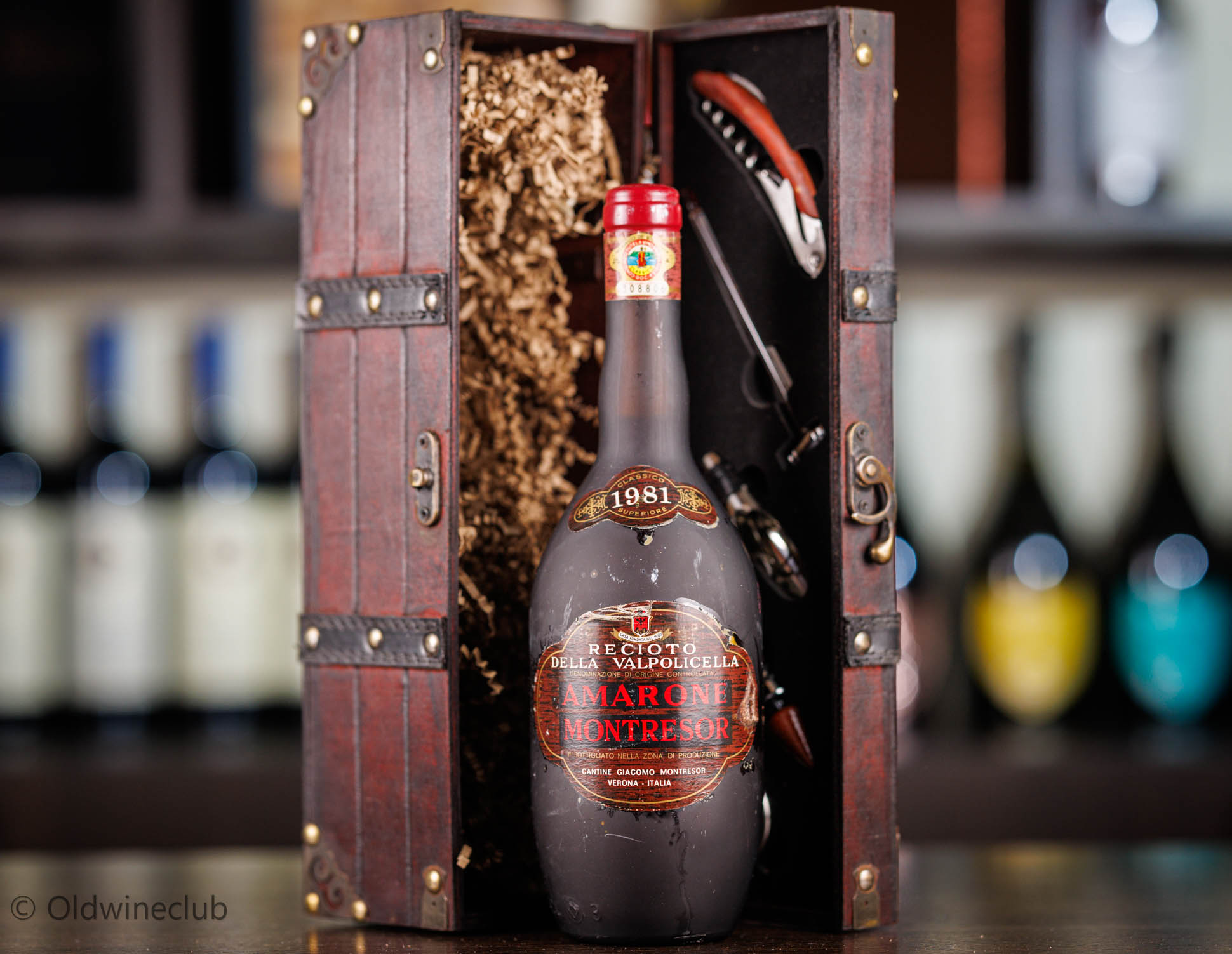 Бутылка продается в подарочном деревянном ящике с элитными винными аксессуарами.