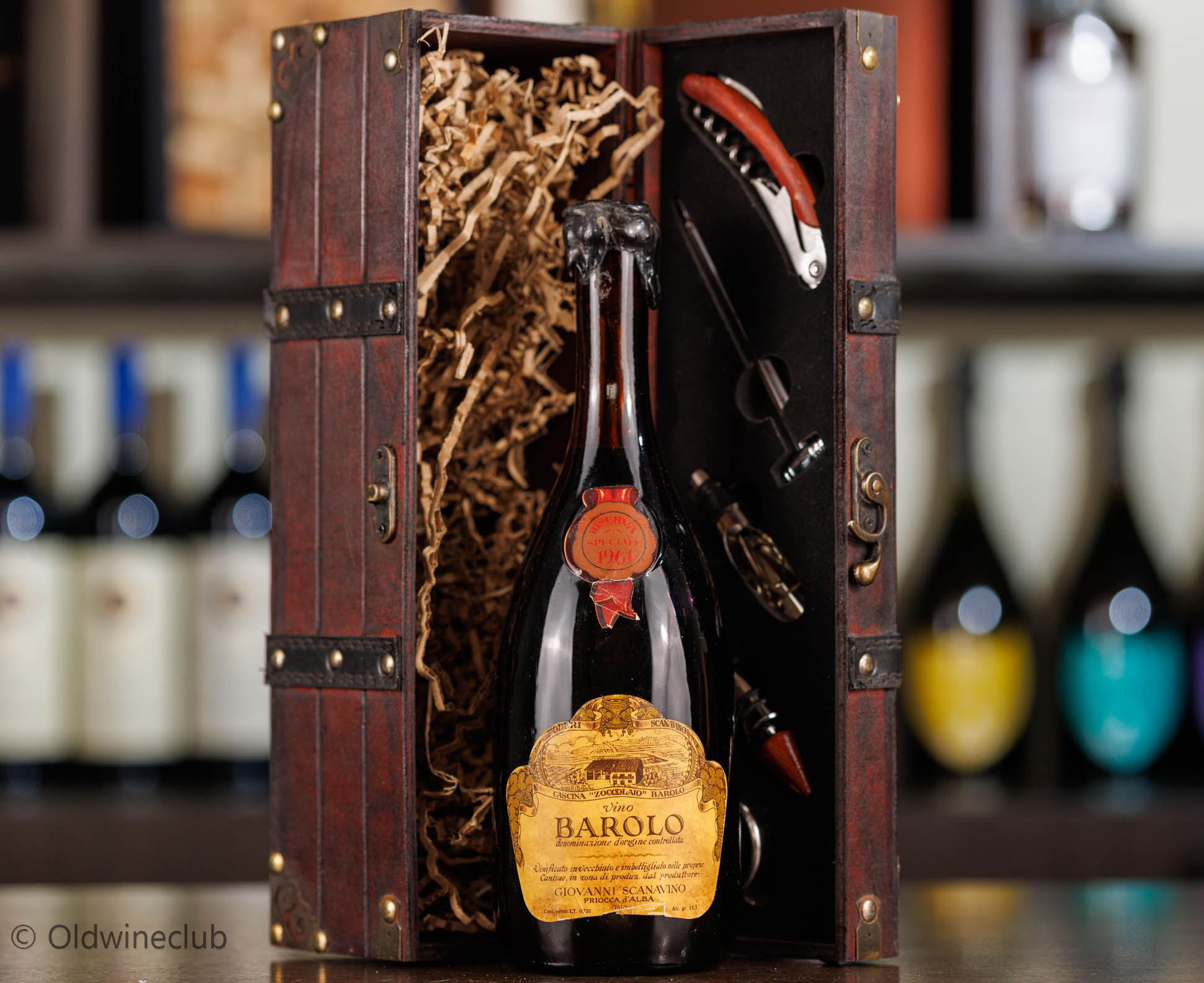 Бутылка предлагается в деревянном подарочном коробе с аксессуарами для вина.