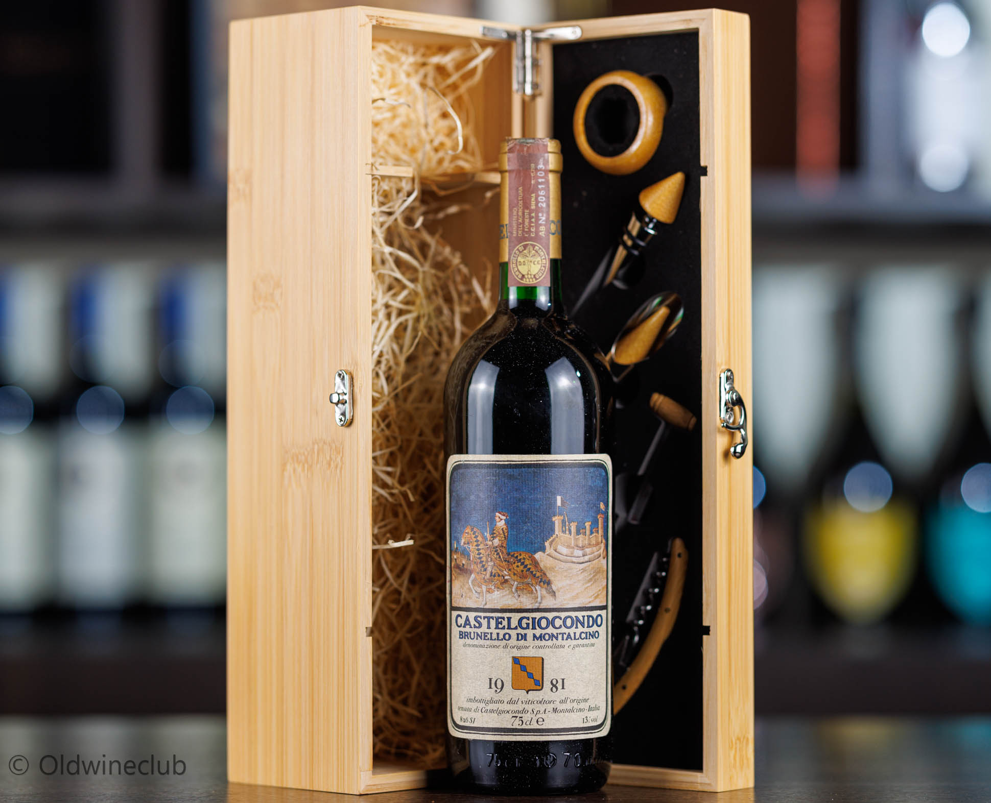 При покупке бутылки стилизованный деревянный короб с элитными винными аксессуарами в подарок.