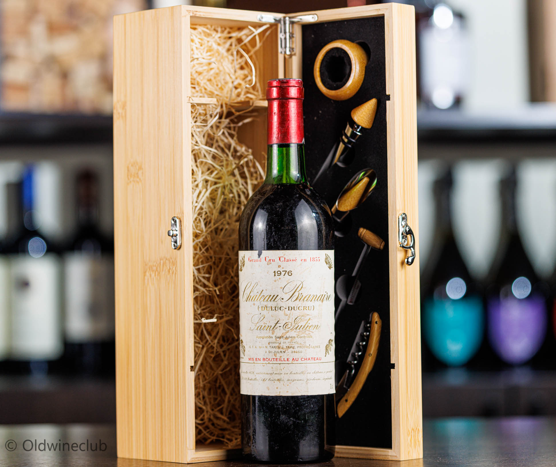 Бутылка предлагается в деревянном подарочном коробе с аксессуарами для вина.