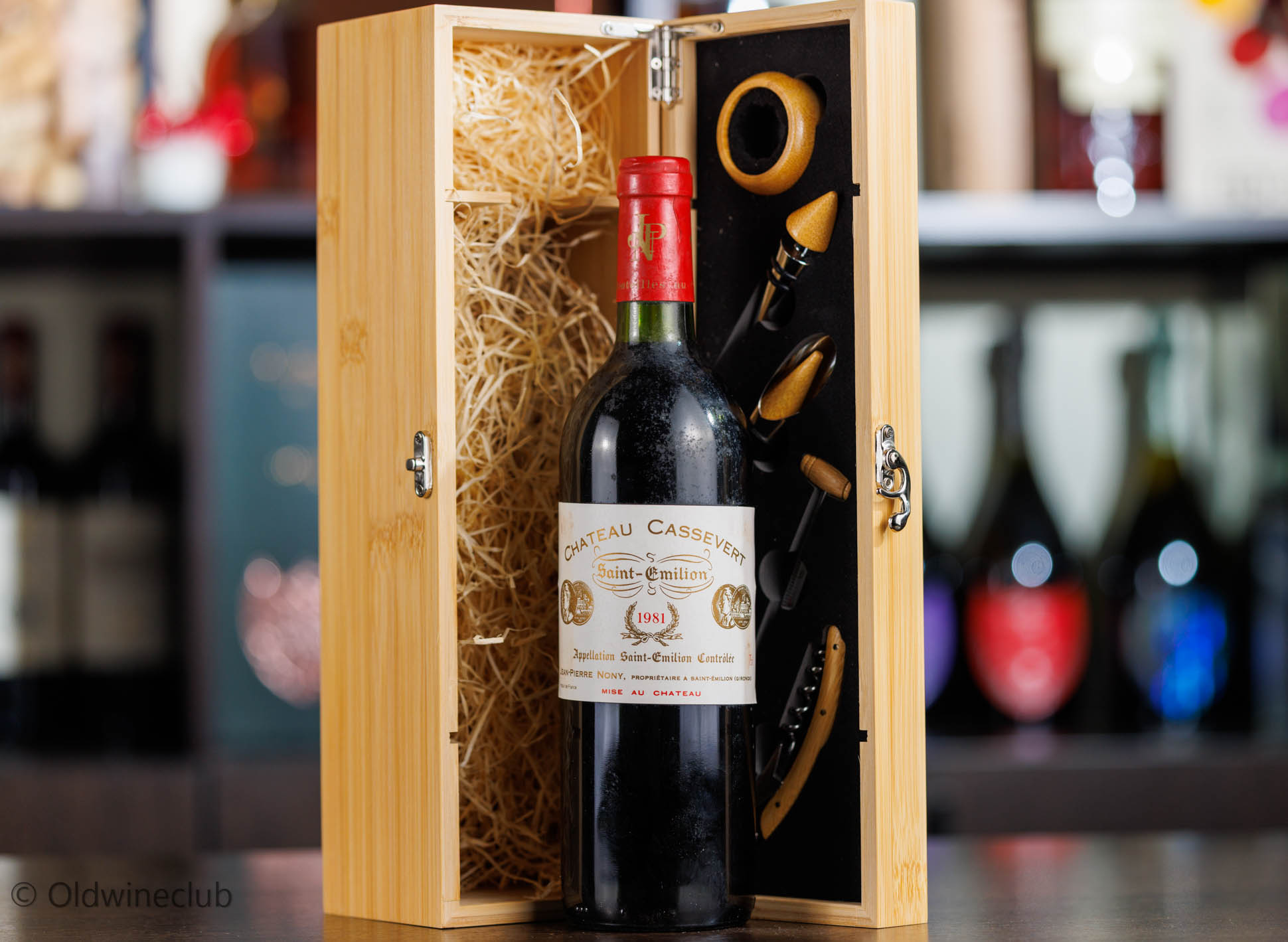 Бутылка предлагается в деревянном подарочном коробе с аксессуарами для вина.