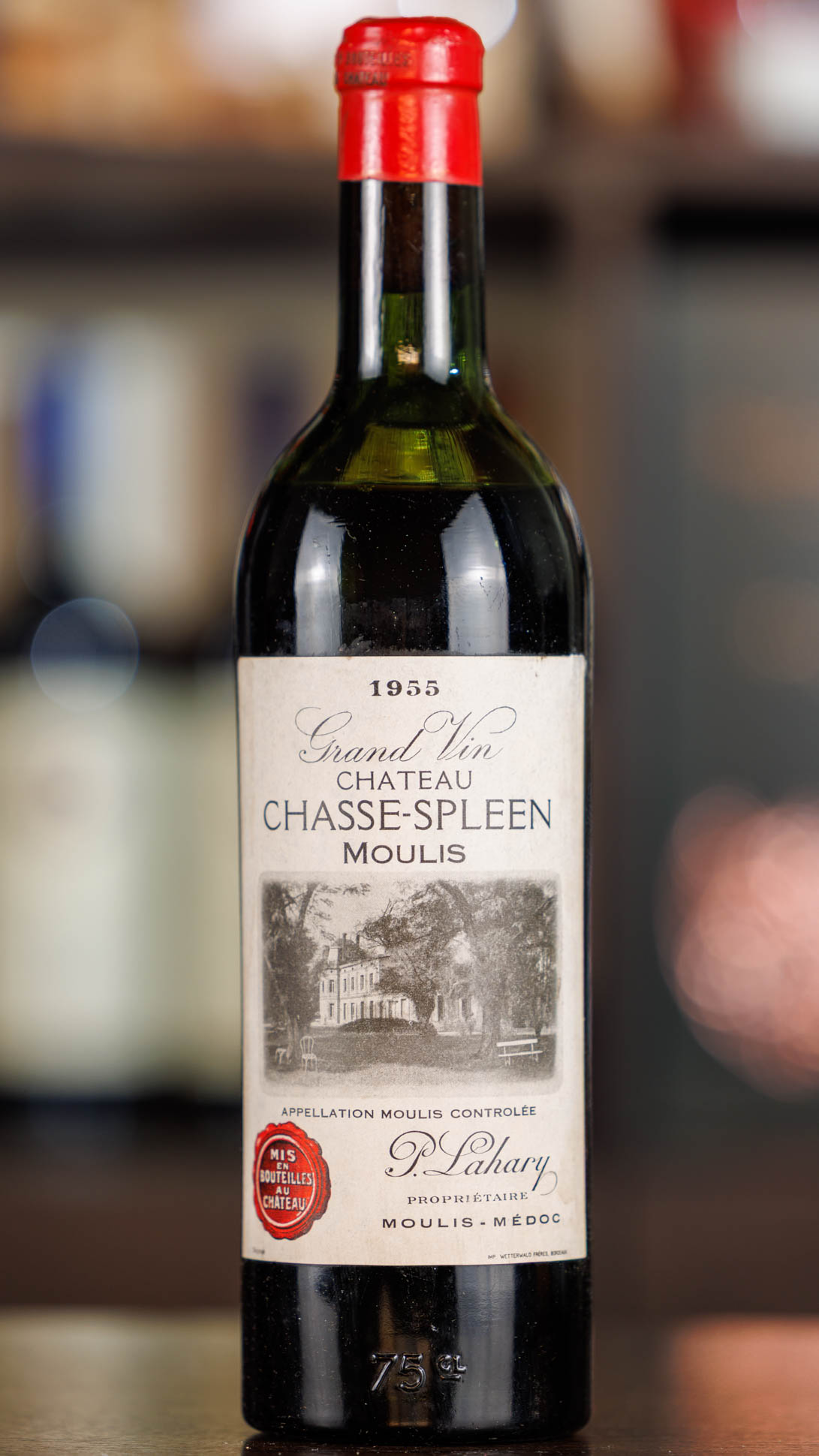 Chateau Chasse-Spleen 1955 года демонстрирует сложный и аристократичный букет, в котором соединились ноты сушеных красных и черных ягод, кожи, кедра, табака и влажной земли. В аромате ощущаются нюансы трюфеля, грибов и старой табакерки, что является характерным признаком благородного старения классического Медока.
