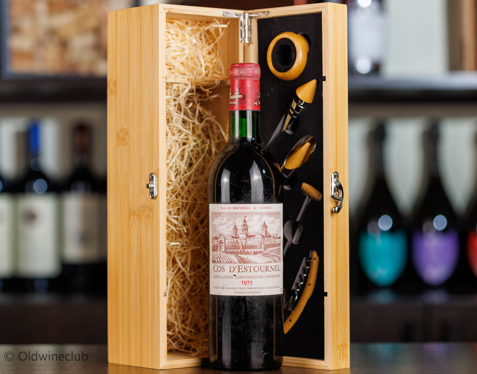 Бутылка предлагается в подарочном деревянном ящике с элитными винными аксессуарами.