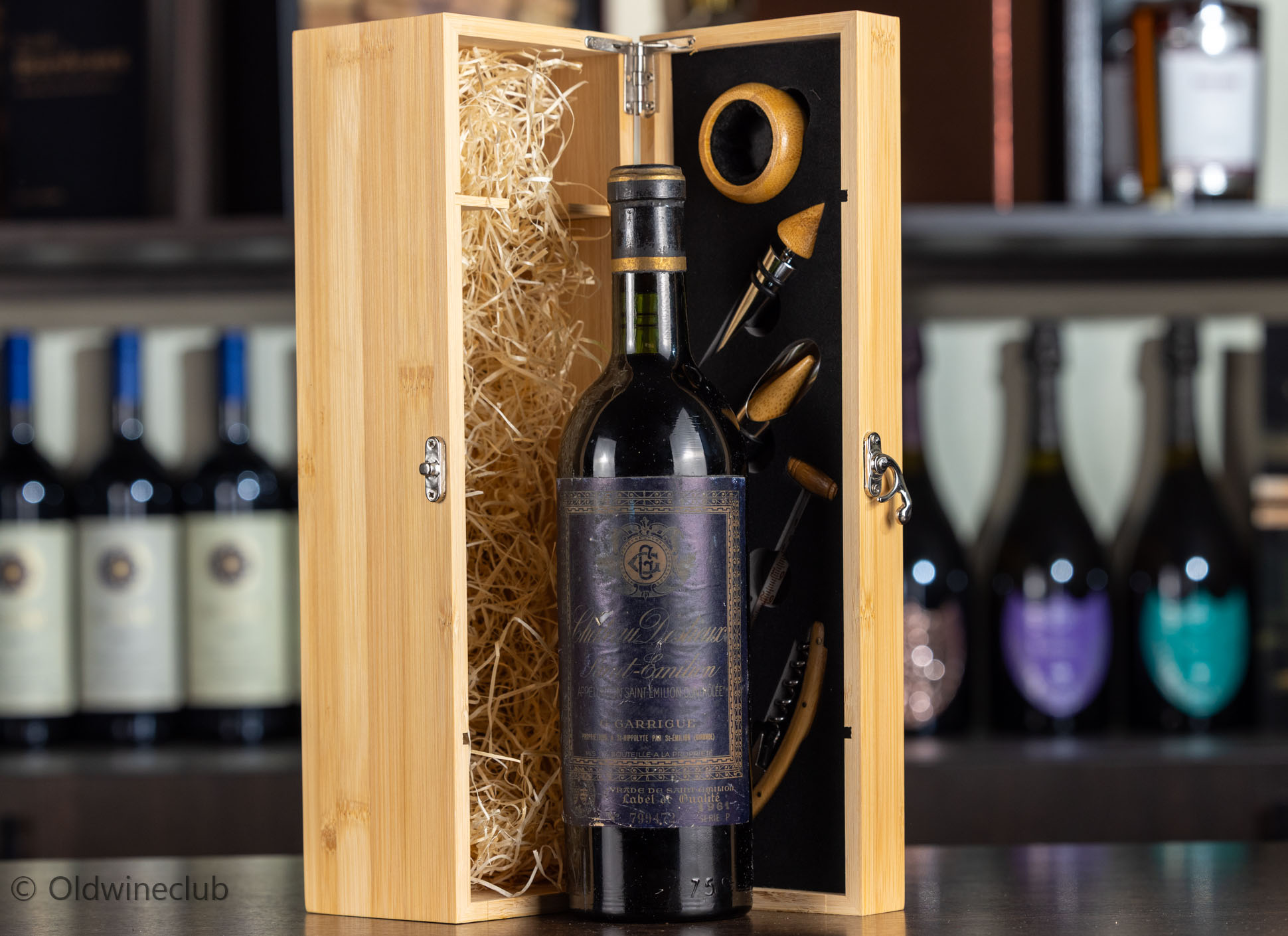 Бутылка предлагается в деревянном подарочном коробе с аксессуарами для вина.