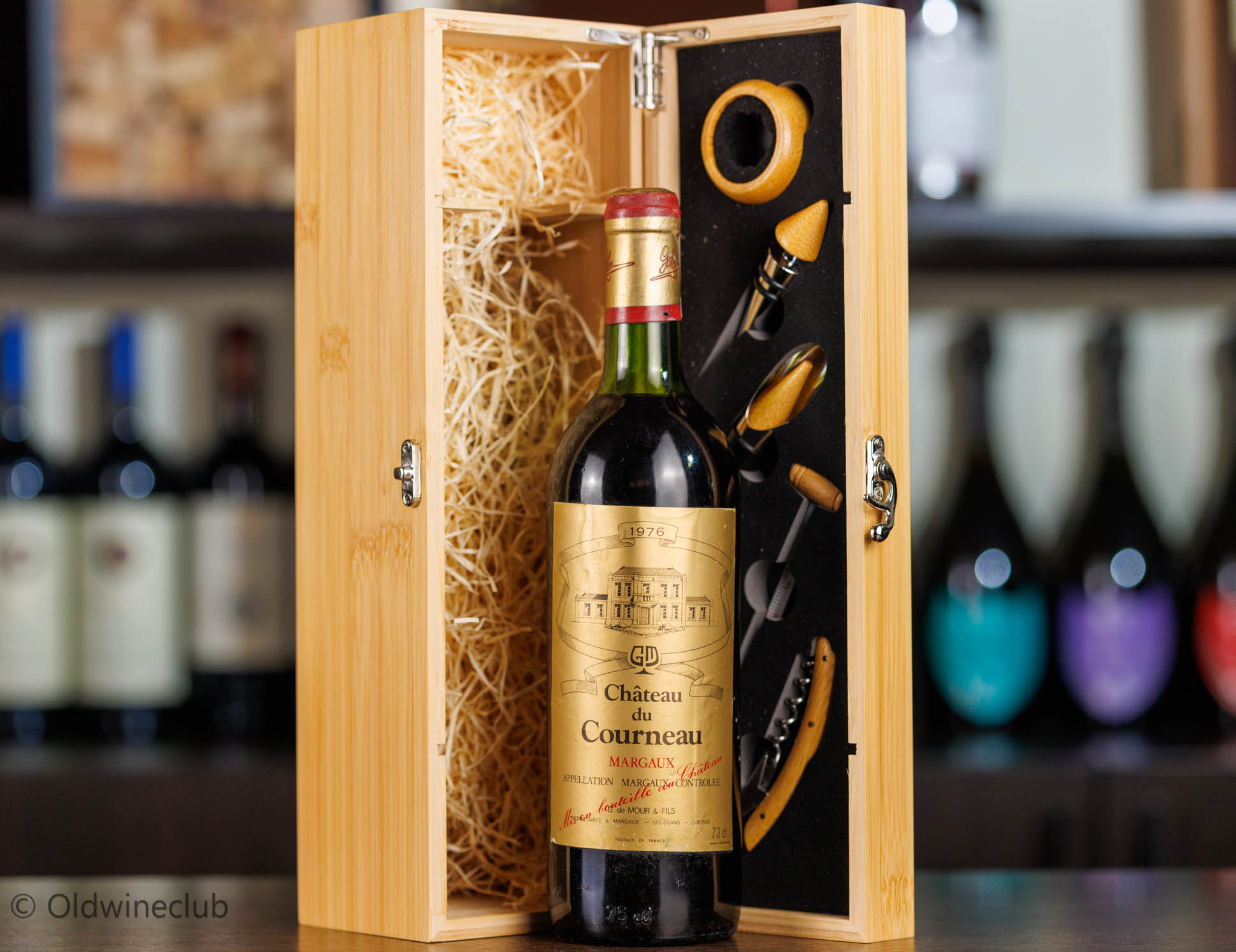 Бутылка предлагается в подарочном деревянном ящике с элитными винными аксессуарами.