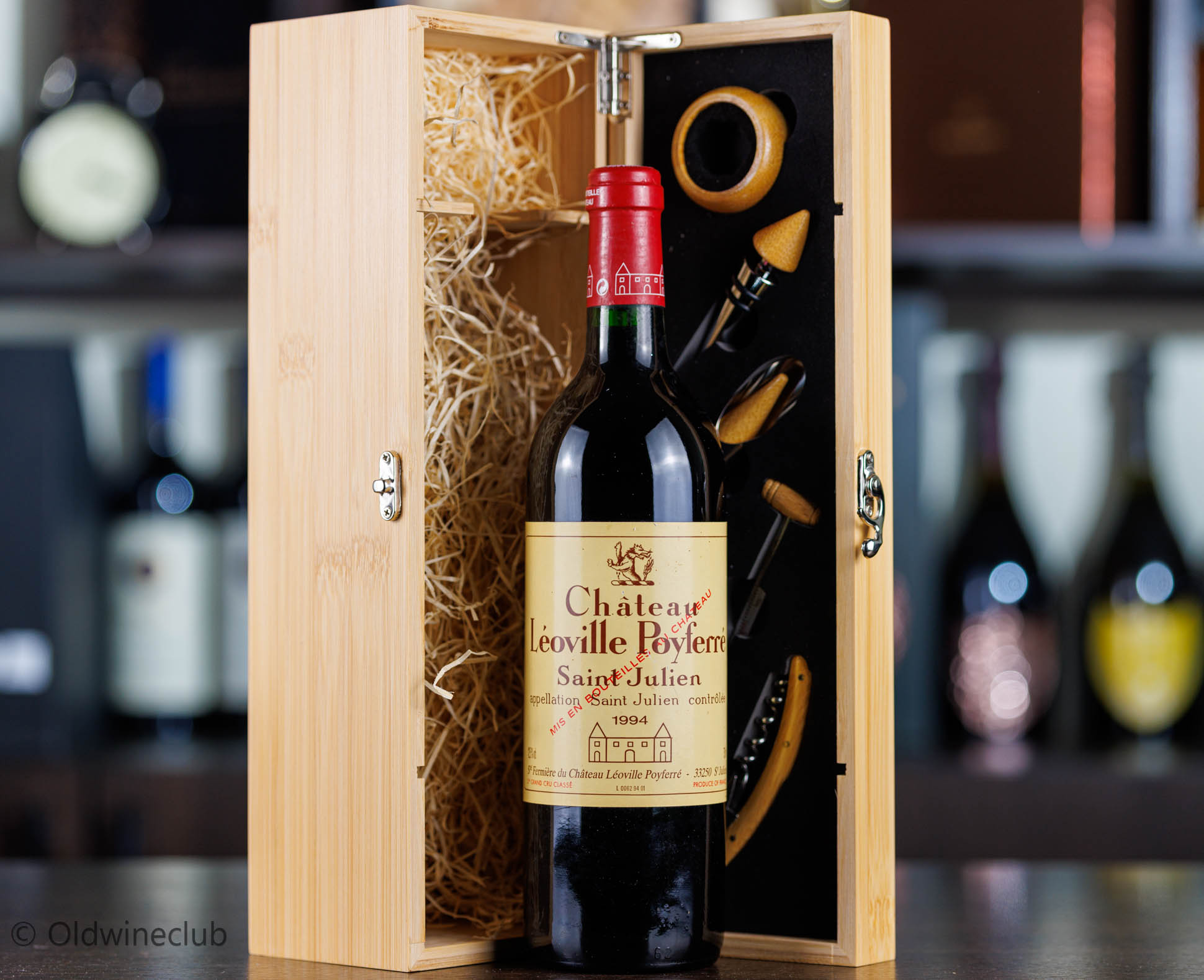 Бутылка предлагается в деревянном подарочном коробе с аксессуарами для вина.