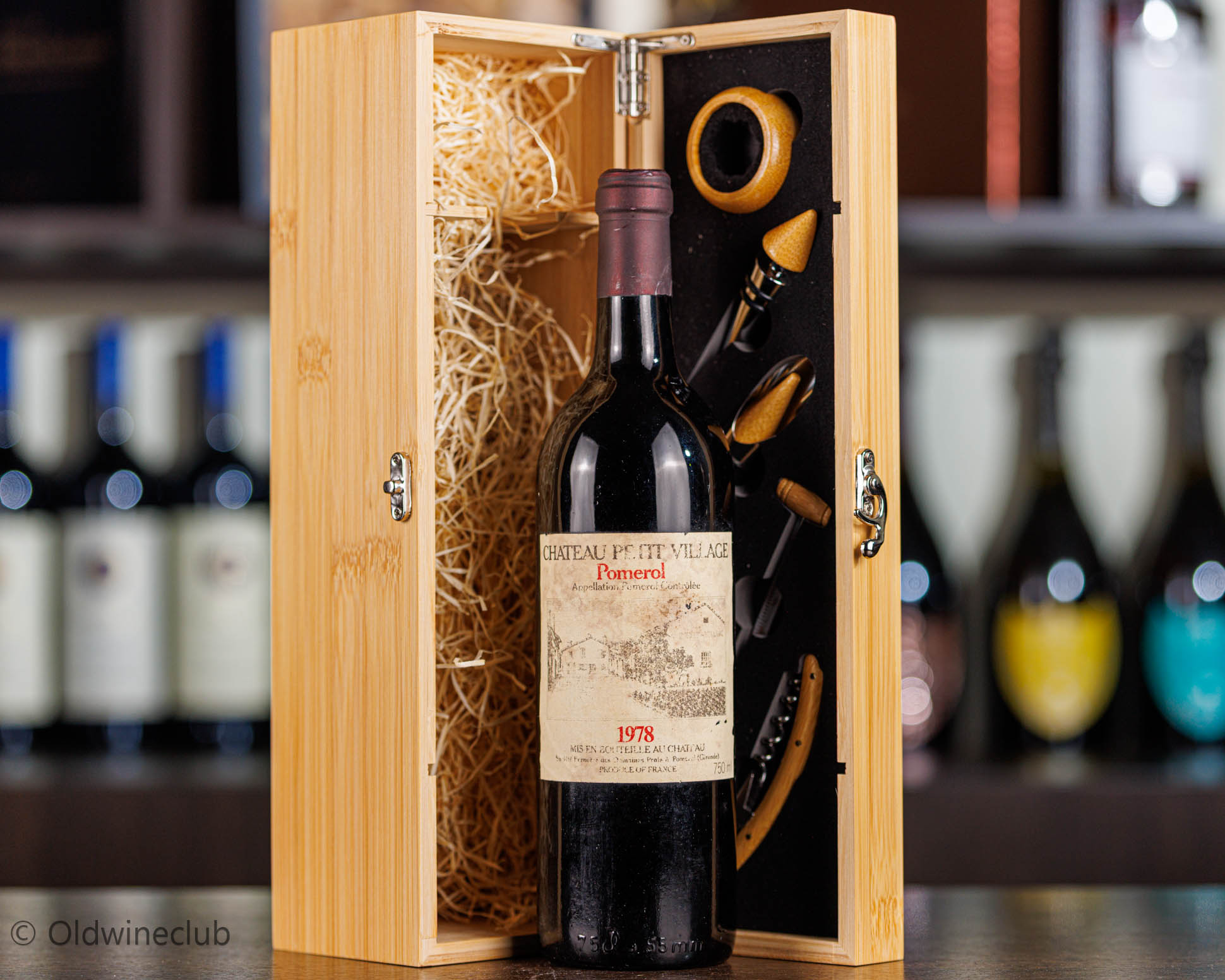 Бутылка предлагается в деревянном подарочном коробе с аксессуарами для вина.