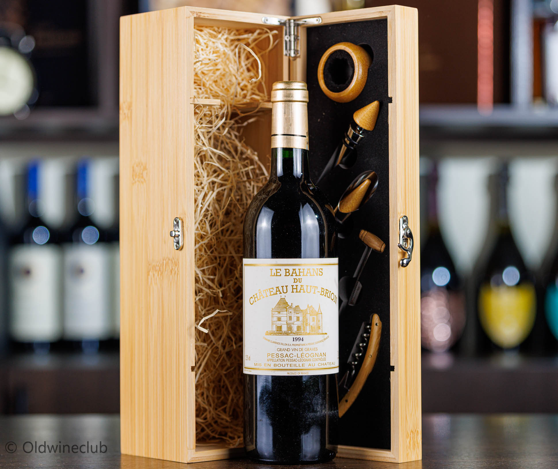 Бутылка предлагается в деревянном подарочном коробе с аксессуарами для вина.
