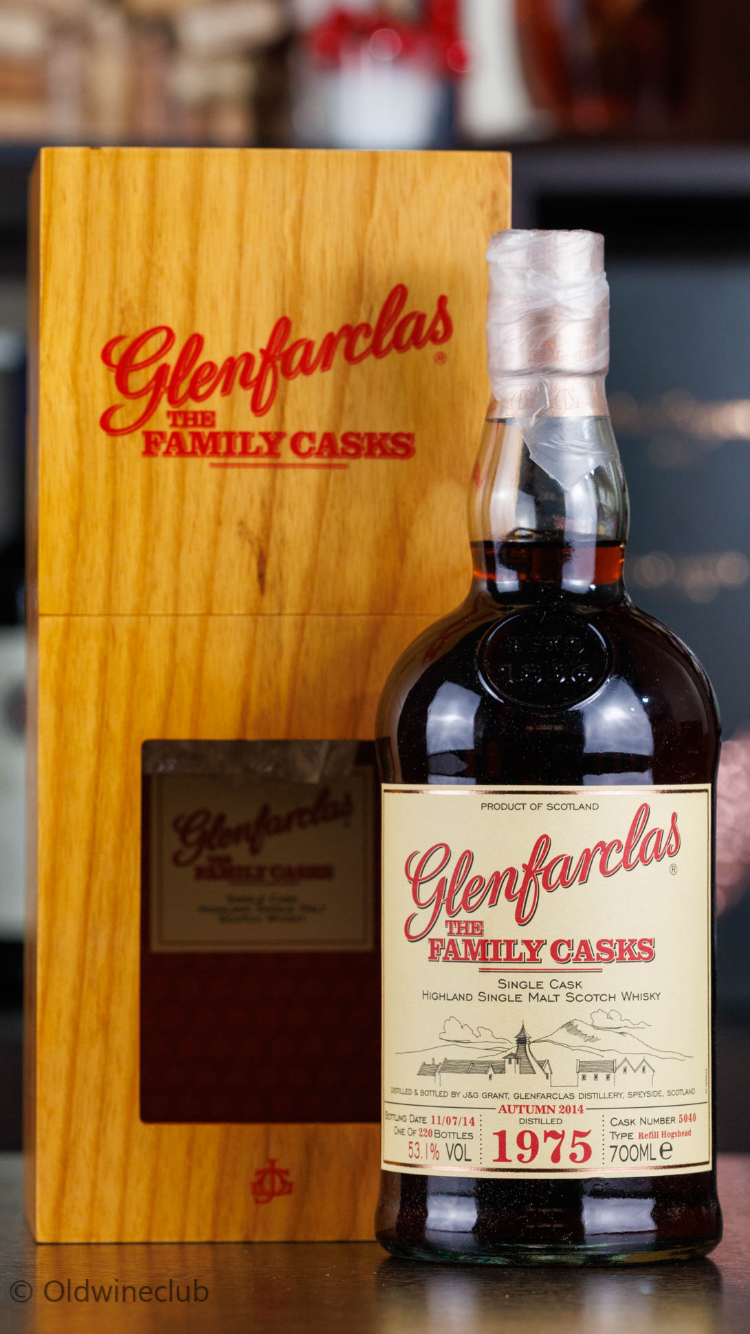 Очень редкий односолодовый винтажный виски Glenfarclas 1975 года, регион Спейсайд, Шотландия. Тираж составил менее 200 бутылок.