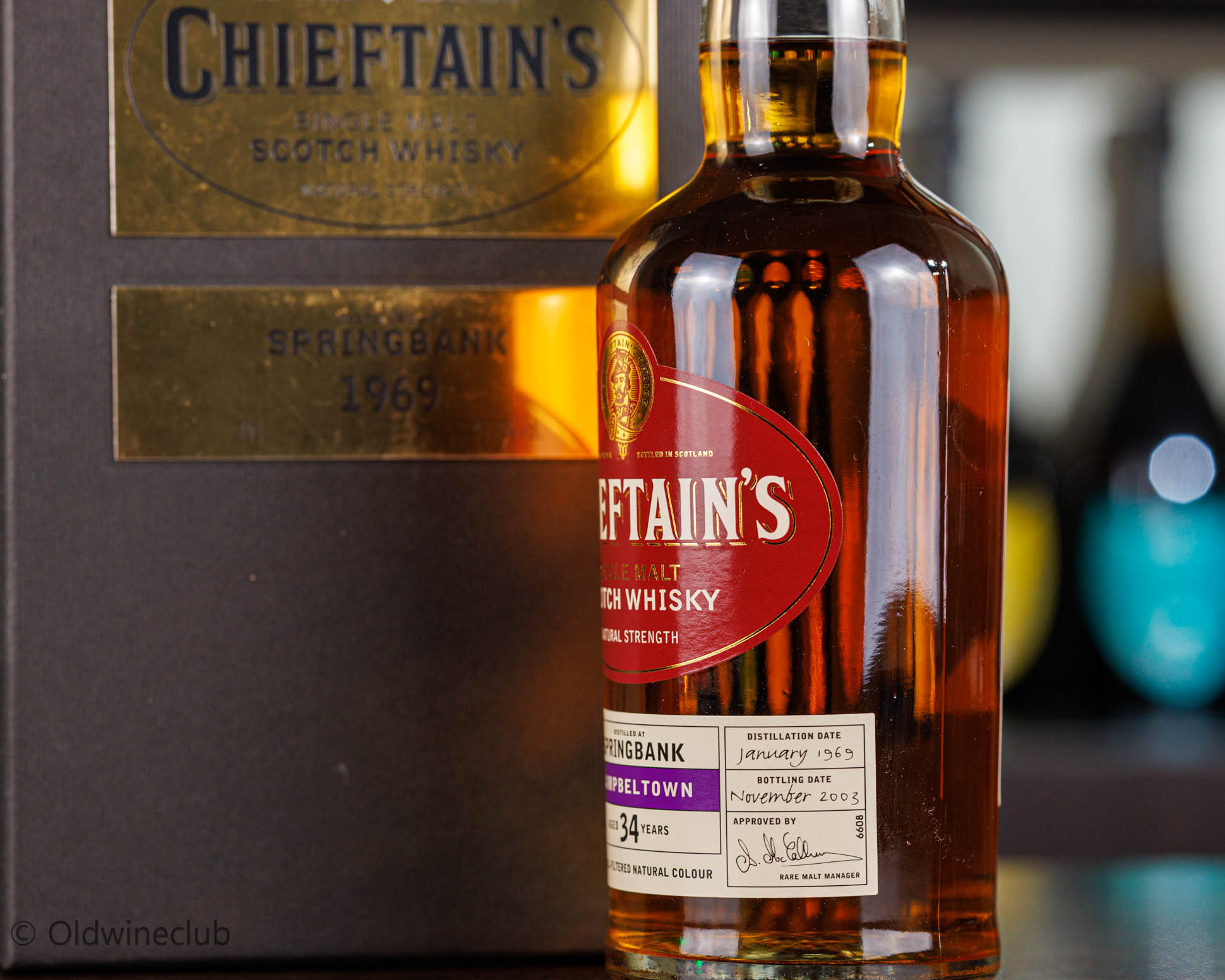 Односолодовый винтажный виски Springbank Chieftain’s урожая 1969 года. Был выпущен компанией Ian Macleod в рамках серии Chieftain's Choice.