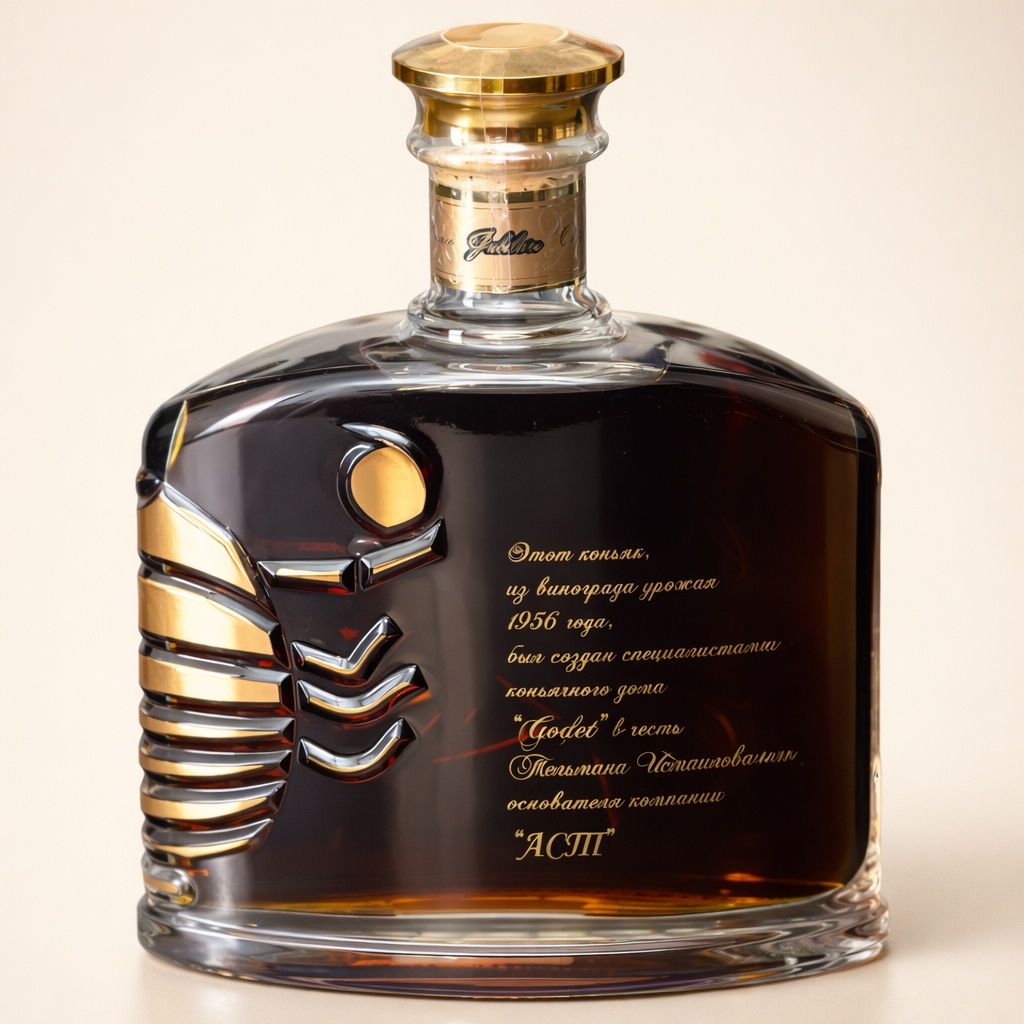 Коньяк от Французского коньячного дома Godet AST Jubilare Cognac Extra 1956 Scorpion. Произведен специально для юбилея основателя АСТ Тельмана Исмаила, о чем написано на контрэтикетке.