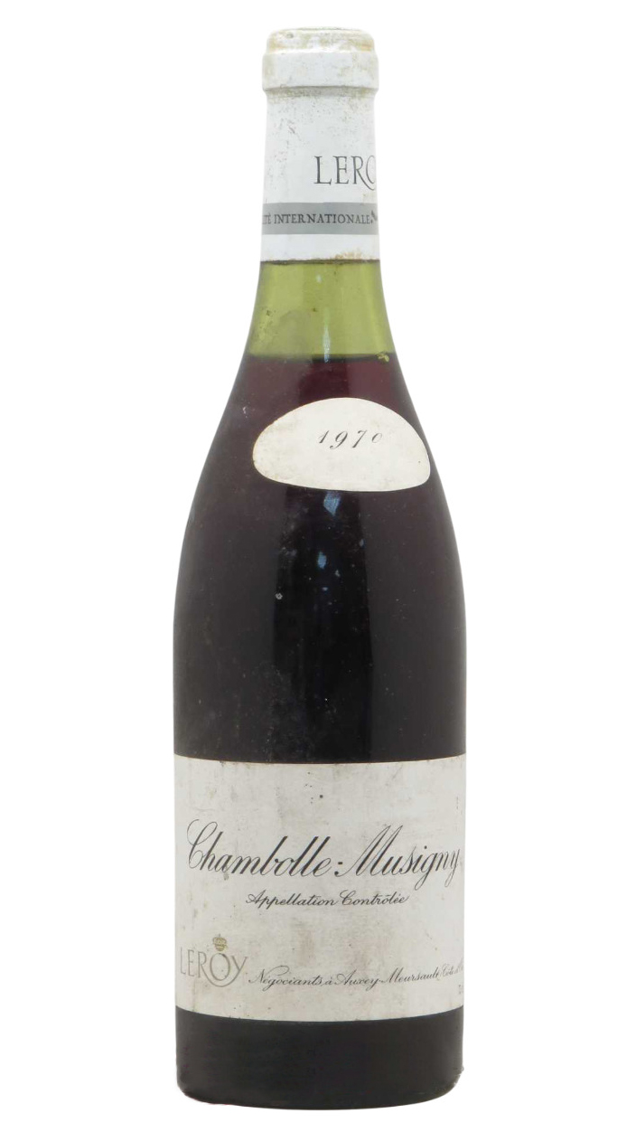Французское красное сухое вино Leroy Chambolle-Musigny Les Charmes урожая 1970 года.