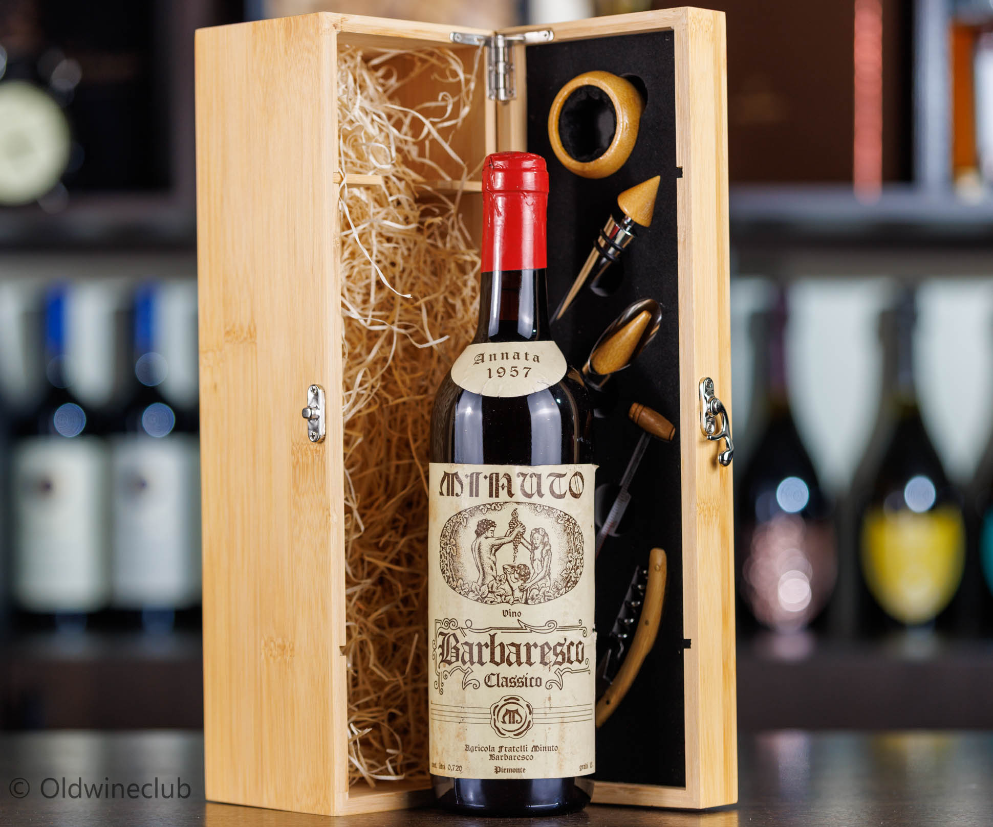 Бутылка предлагается в подарочном деревянном ящике с элитными винными аксессуарами.