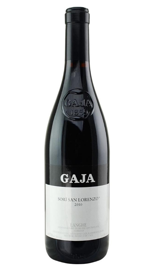 Красное итальянское сухое вино Barbaresco Sori San Lorenzo урожая 2010 года из Пьемонта от производителя Gaja.