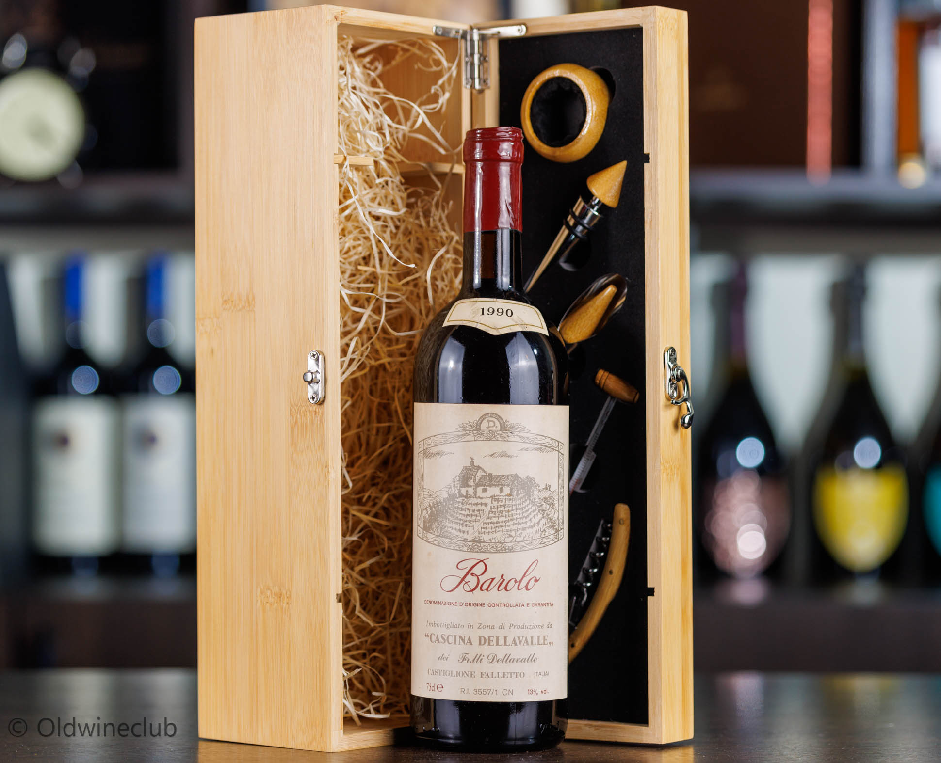 Бутылка предлагается в подарочном деревянном ящике с элитными винными аксессуарами.
