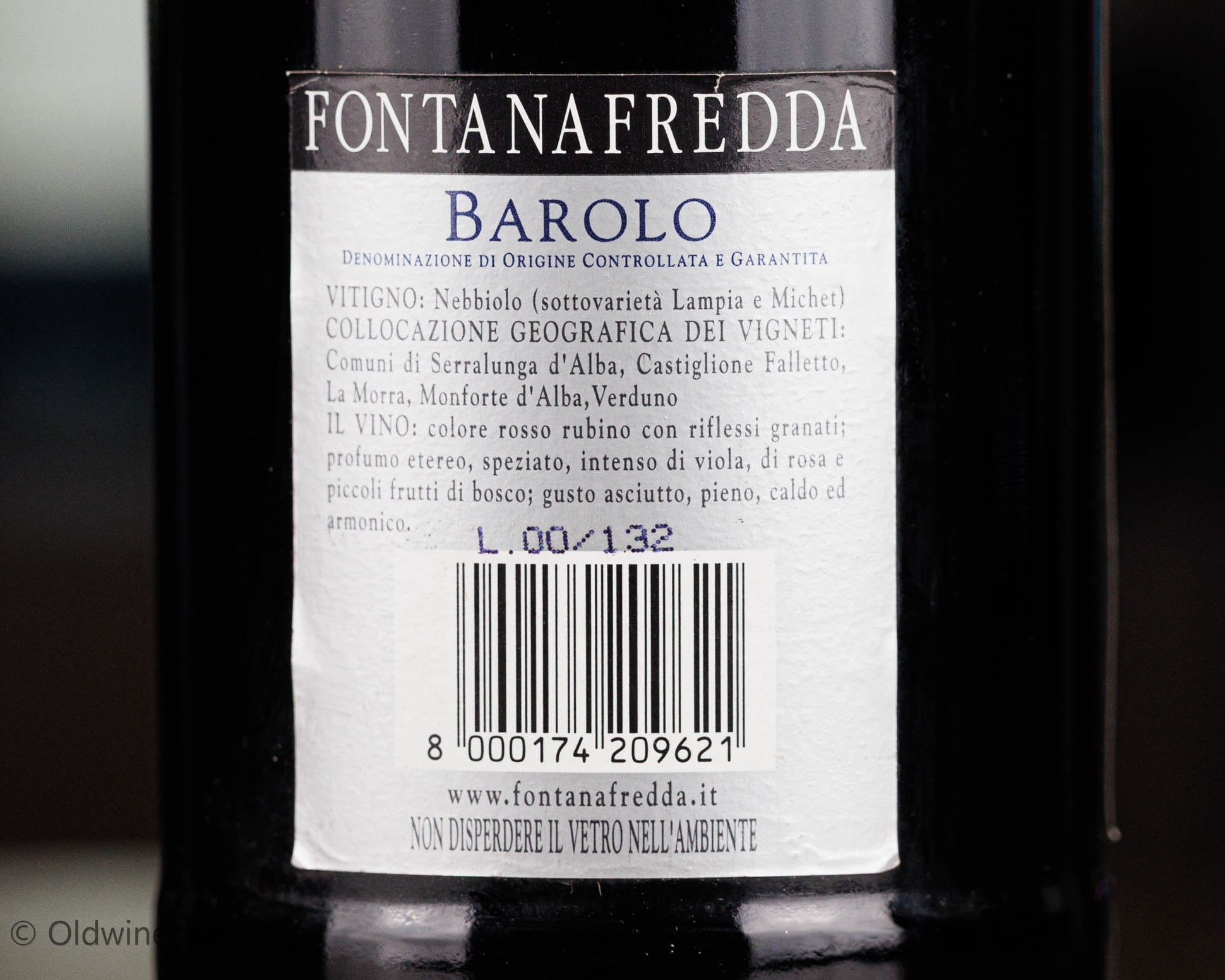 Сделано из винограда сорта Неббиоло, выращенного в коммуне Серралунга-д'Альба, Ла Морра, Кастильоне Фалетто и Вердуно, регион Пьемонт.