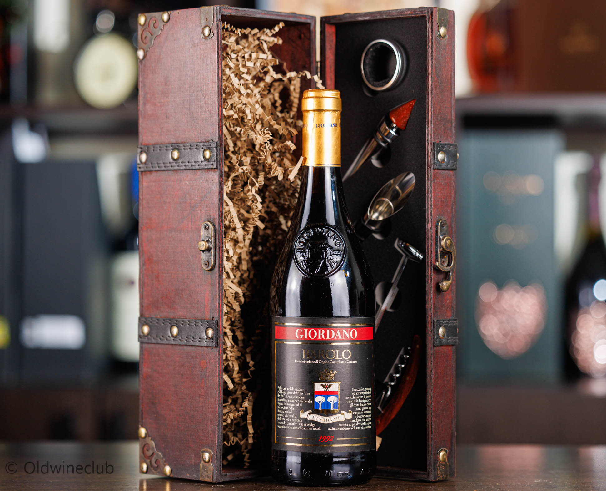 Бутылка предлагается в деревянном подарочном коробе с аксессуарами для вина.