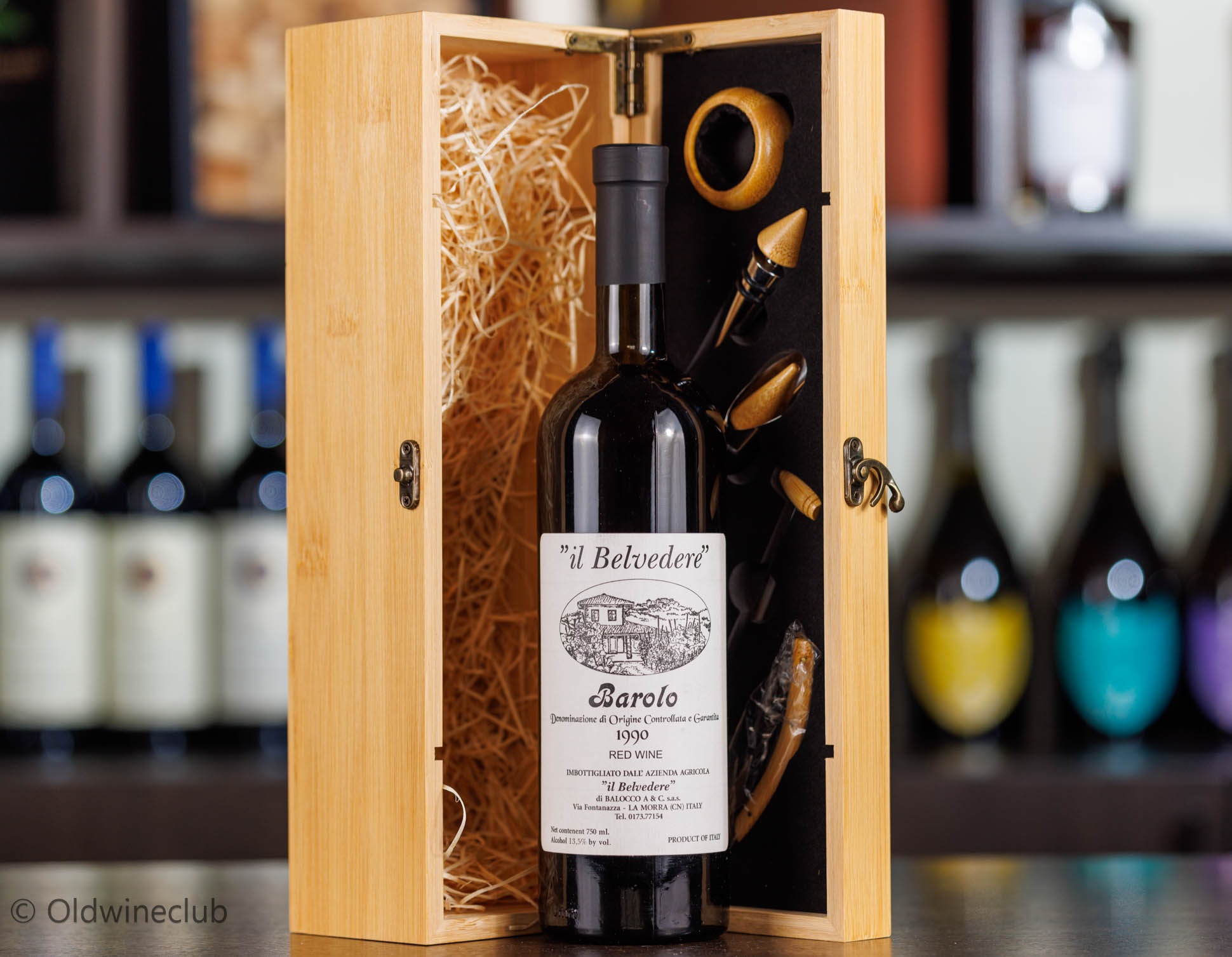 Бутылка предлагается в деревянном подарочном коробе с аксессуарами для вина.