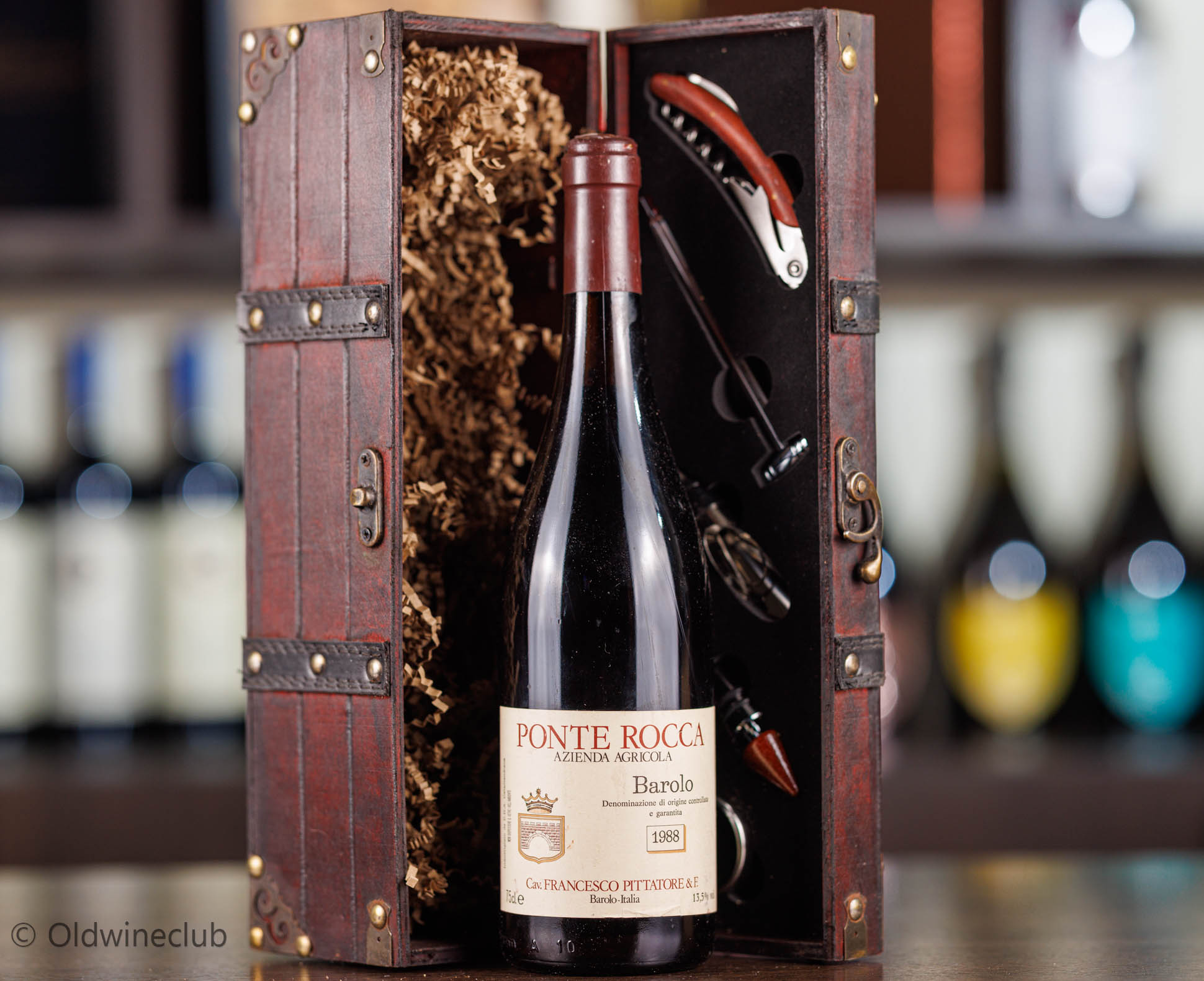 При покупке бутылки стилизованный деревянный короб с элитными винными аксессуарами в подарок.