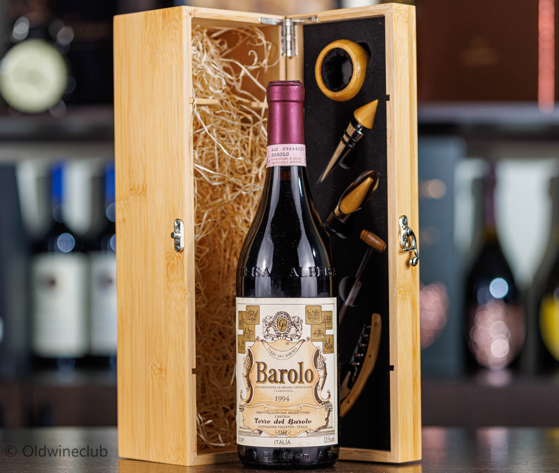 Бутылка продается в подарочном деревянном ящике с элитными винными аксессуарами.