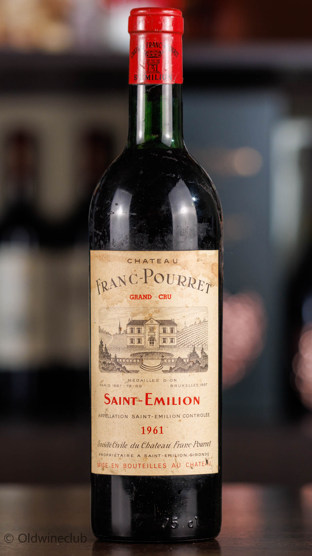 Благородное красное вино Chateau Franc-Pourret из аппелласьона Saint-Emilion, правый берег Бордо, Франция.