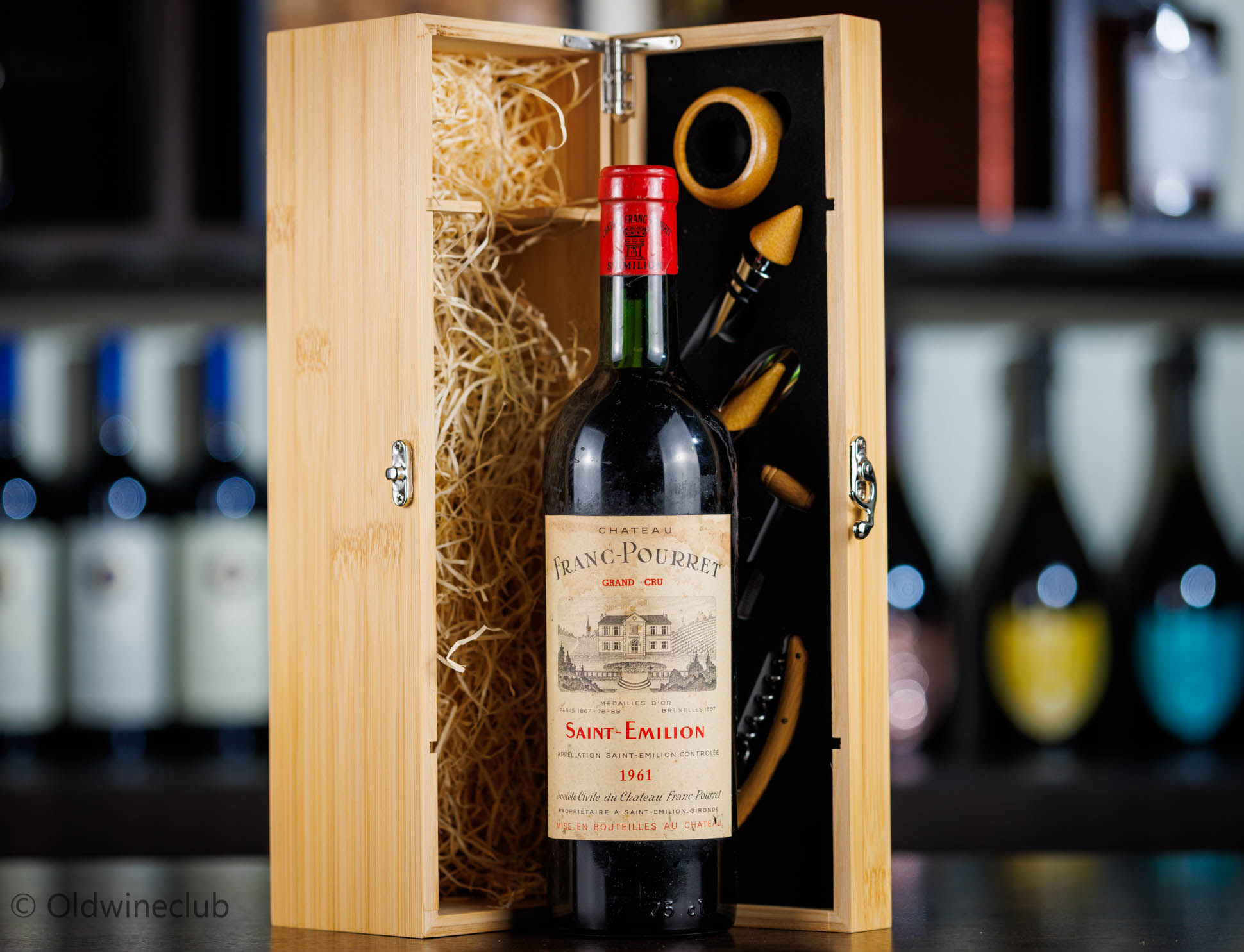 Бутылка продается в подарочном деревянном ящике с элитными винными аксессуарами.