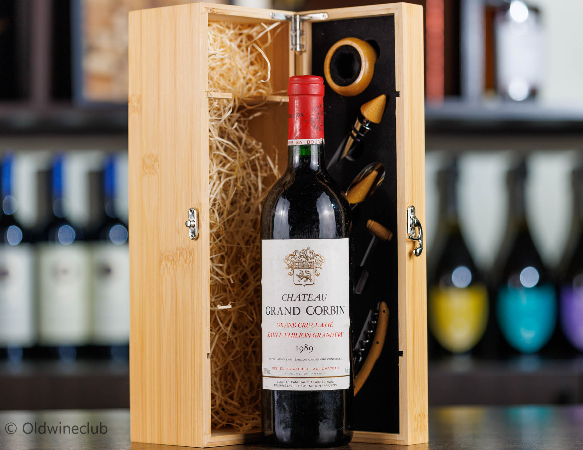 Бутылка предлагается в деревянном подарочном коробе с аксессуарами для вина.