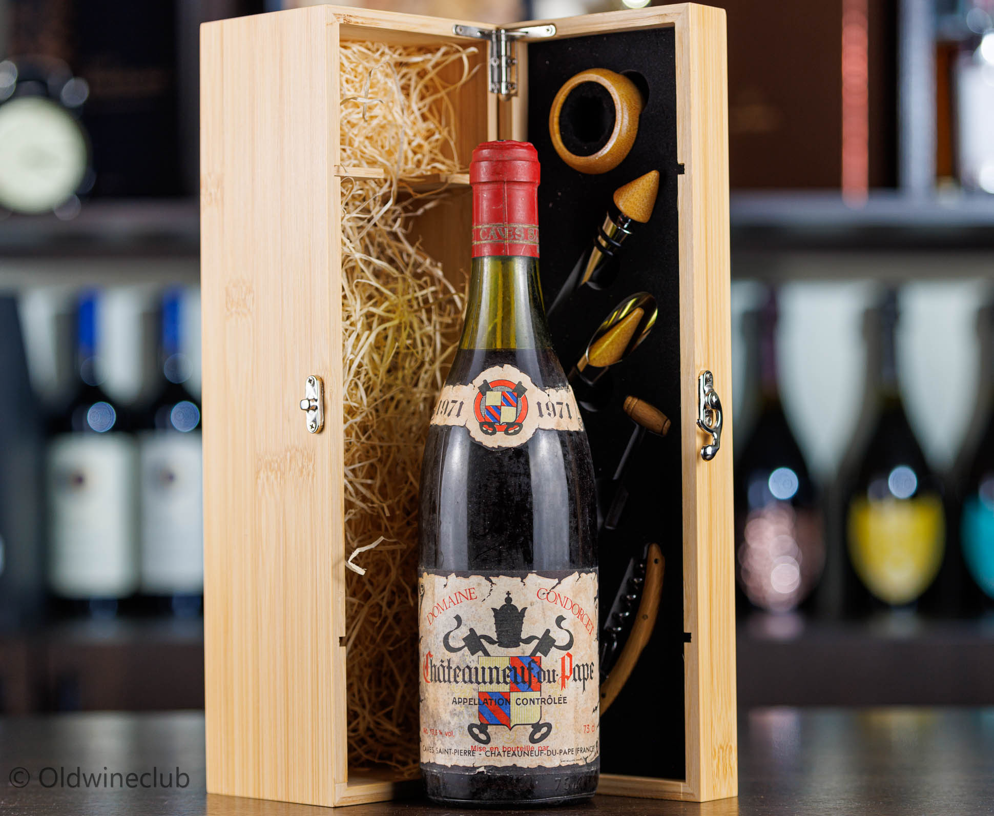 Красное сухое вино Chateauneuf-du-Pape Domaine Condorcet урожая 1971 года из аппелласьона Chateauneuf-du-Pape, регион Долина Роны, Франция.