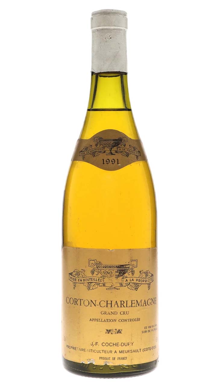 Французское белое сухое вино Domaine Coche-Dury Corton-Charlemagne урожая 1991 года.