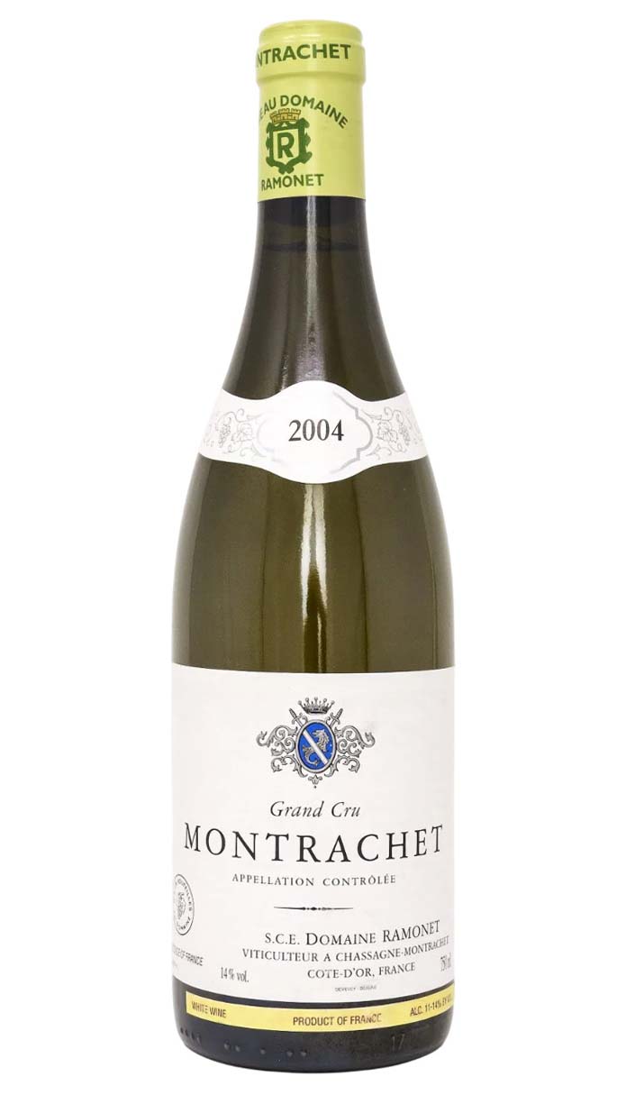 Французское белое сухое вино Domaine Ramonet Montrachet урожая 2004 года.