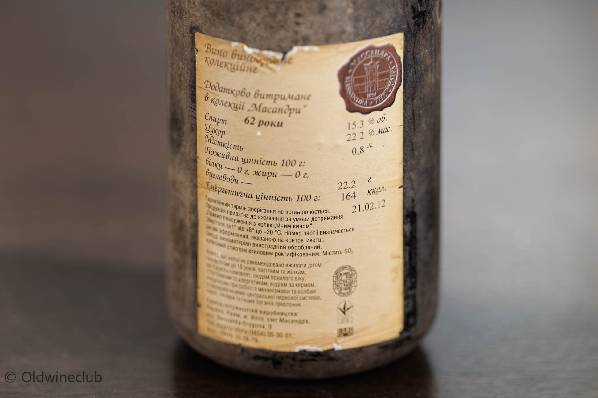 Урожай 1947 года собирали исключительно вручную при достижении ягодами сахаристости не ниже 26%. Выдержка по классической технологии в дубовых бочках из кавказского дуба не менее двух лет в прохладных подвалах завода, а затем 53 года (для данной бутылки) бутылочной выдержки в полном покое в массандровских подвалах.