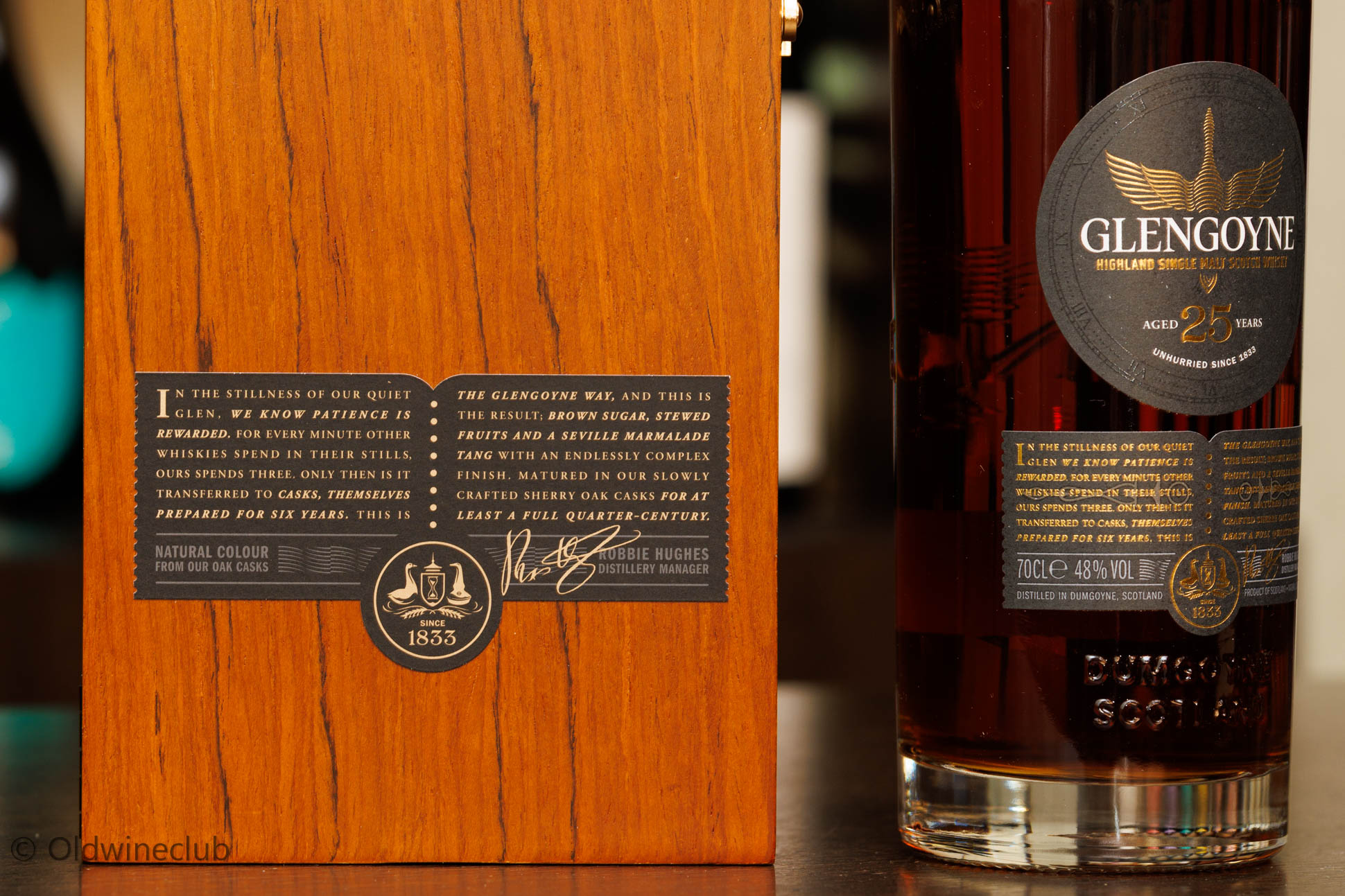 Релиз 25 лет - кульминация линейки, созданная как демонстрация потенциала спирта Glengoyne в долгой выдержке, прежде всего в хересных бочках, которые придают структуру, глубину и благородную сладость.